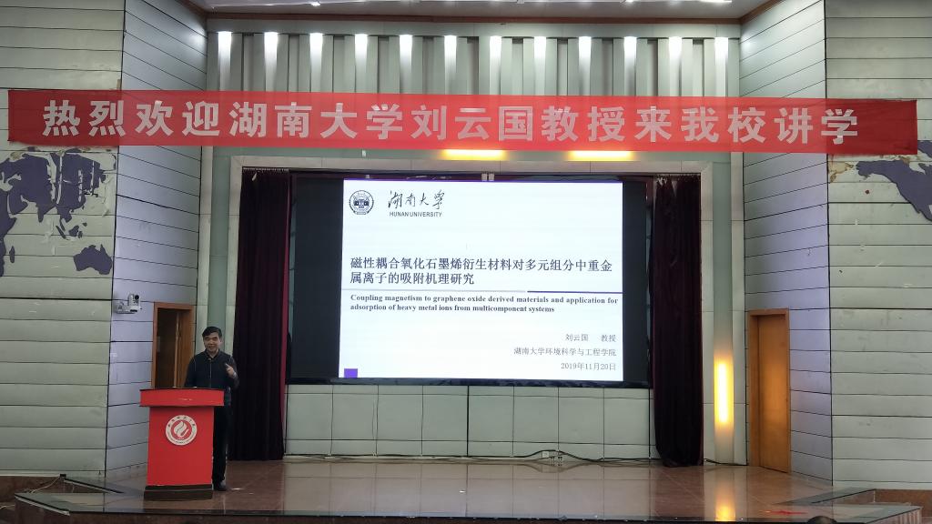 为营造良好的校园学术氛围,加强团队建设,促进学术交流,11月20日下午四点二十,公司特邀湖南大学环境科学与工程公司刘云国教授在西校区学术报告厅做了题为“环境科学与工程研究思路与方法探讨”的学术报告。报告会由球盟会经理曹丽敏主持,彭晖书记,易诚、杨海副经理,黄斌艳、罗远来老师及师生代表约200余人聆听了本次讲座。