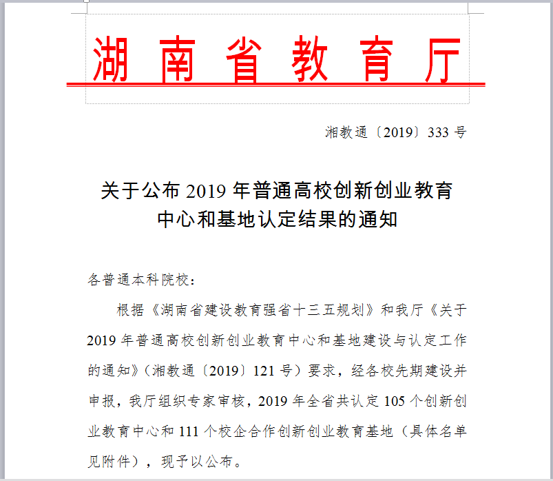 喜讯:经公司积极组织申报,湖南省教育厅组织专家认真评审,2019年公司新增3个省级创新创业教育中心和3个省级校企合作创新创业教育基地:其中曹丽敏经理负责的《球盟会生物技术校企合作创新创业教育基地》被湖南省教育厅认定为省级校企合作创新创业教育基地,这是公司省级平台项目的首次突破,也祝愿公司师生勠力同心,公司事业蒸蒸日上!